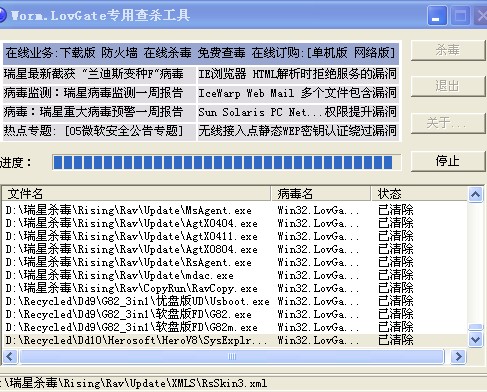 今天刚中了爱情后门病毒,把我的电脑上的所有可执行性文件,也就是.exe文件全改成了压缩文件,杀毒软件都运行不了。下了个瑞星爱情后门专杀,不杀不要紧,一杀吓一跳。。。电脑里的所有可执行性文件都是病毒,一下子400多个。。。。急死了,杀完重起后还有,我准备在安全模式下杀下看看怎么样,谁有好的办法和怎么解决教我一下,小弟谢谢了。我用的是xp的系统