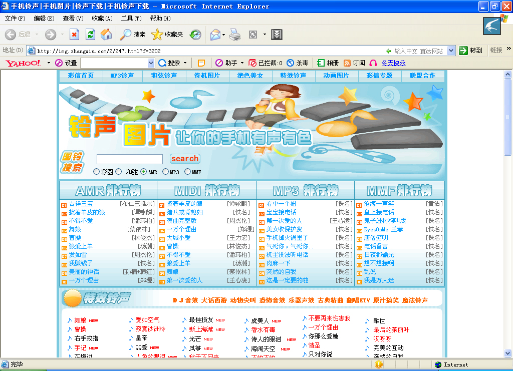 现在,情况貌似控制住了,但是仍会间歇性的弹出莫名其妙的网站。现在看来弹出网站好像固定有三、四个,其中一个是不健康的,其他的是下载彩信和卖东西的。下面的网址就是其中一个:(各位帮忙的高手千万不要点啊,还不知道安不安全有没有毒呢。我贴上来是给技术人员看看有没有相关情况的。)