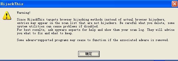 还有,我想用HijackThis 但是用不了,跳出一警告信息就没呢.