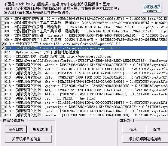 O10 - 未知的文件在 Winsock LSP: c:\windows\system32\quartz32.dll