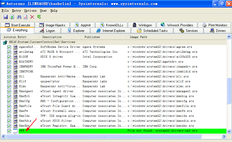删除服务项NPF(图1)、