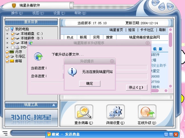 我的瑞星杀毒软件怎么升级不起啊?升级时连接不到瑞星网站