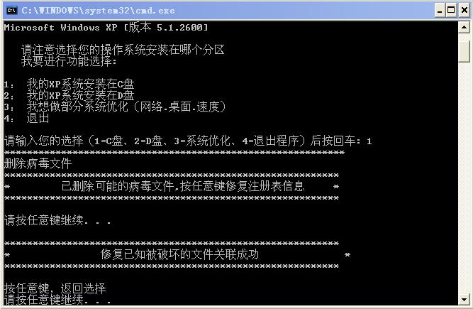 1、该批处理只适用于安装在C盘或D盘下XP操作系统。