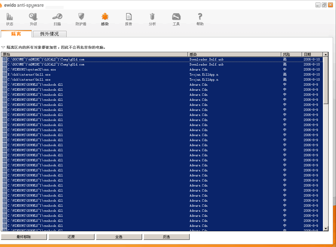 O4 - 启动项HKLM\\Run: [!ewido] "C:\Program Files\ewido anti-spyware