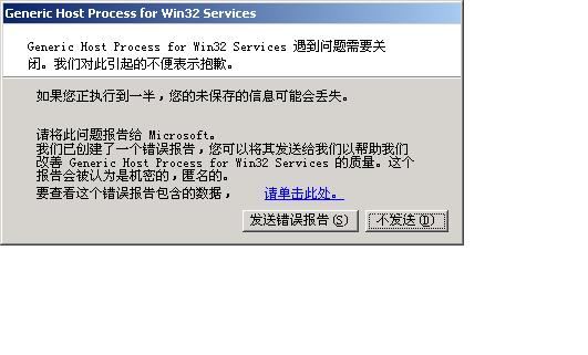 就出Generic Host Process for Win32 Services 出错,要发送错误报告,但是,选不发送后,他自己就关了,关了之后,问题来了