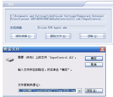 我今天上网上银行,银行要我下安全插件,安装时瑞星发现病毒,我点了杀毒但是后面又跳出来一个对话框说什么所需文件。我点了确定没反应达。于是取消了,然后重新来过还是这样子达,有点摸不着头脑了,自己搞不定上来求助大家~那位高手救救我把~~~先谢谢了,,,