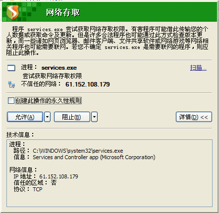 得逞后,mswdm.exe自动停止运行。但services.exe开始访问网络。