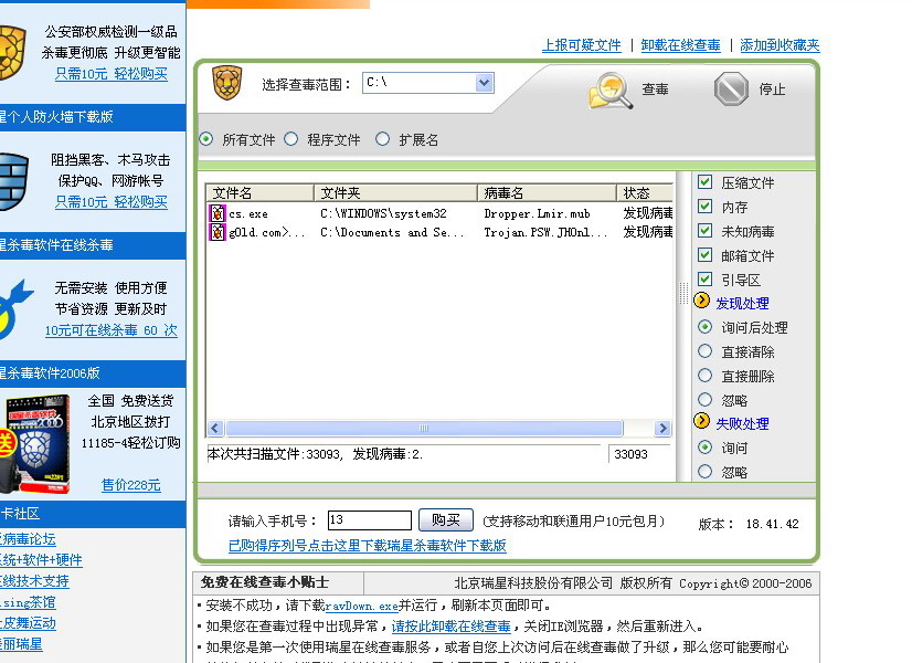 在线查毒怎么和下载版那么大的区别啊??一个查到有病毒,一个没有!!!