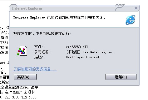 运行IE时显示鼓掌发生时rmod3260.dll文件在运行,确定后IE就因错误关闭了 谁帮帮我啊