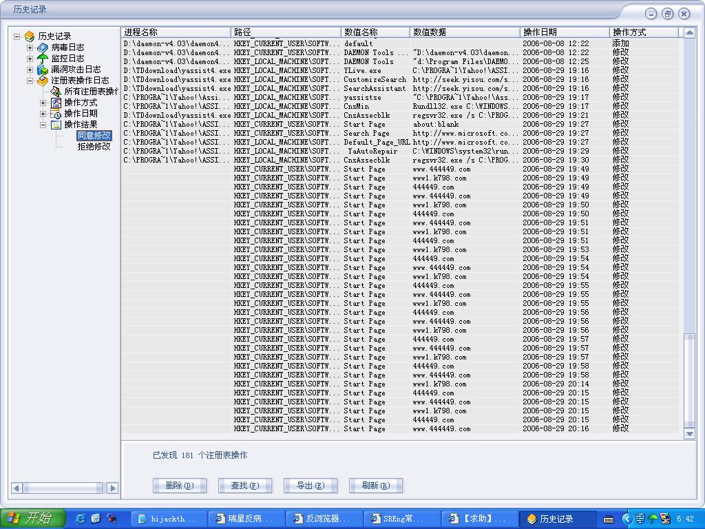 图片中,我的IE被这两个网站修改了,我该怎么办,杀毒杀不了,瑞星不断提示我修改注册表
