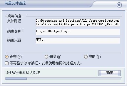 瑞星杀毒软件提示我中毒了.我点击杀毒,提示说重启电脑后删除,但是我重启后软件还是提示这个