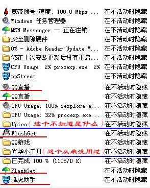 昨天经一位网友提醒,在“自定义通知”中看到了很多奇怪的图标,其中有从没使用过的工具,还有早已删除的雅虎助手(如附件所示),想请高手帮忙分析下有什么问题,是什么原因造成的。我这里先谢了!