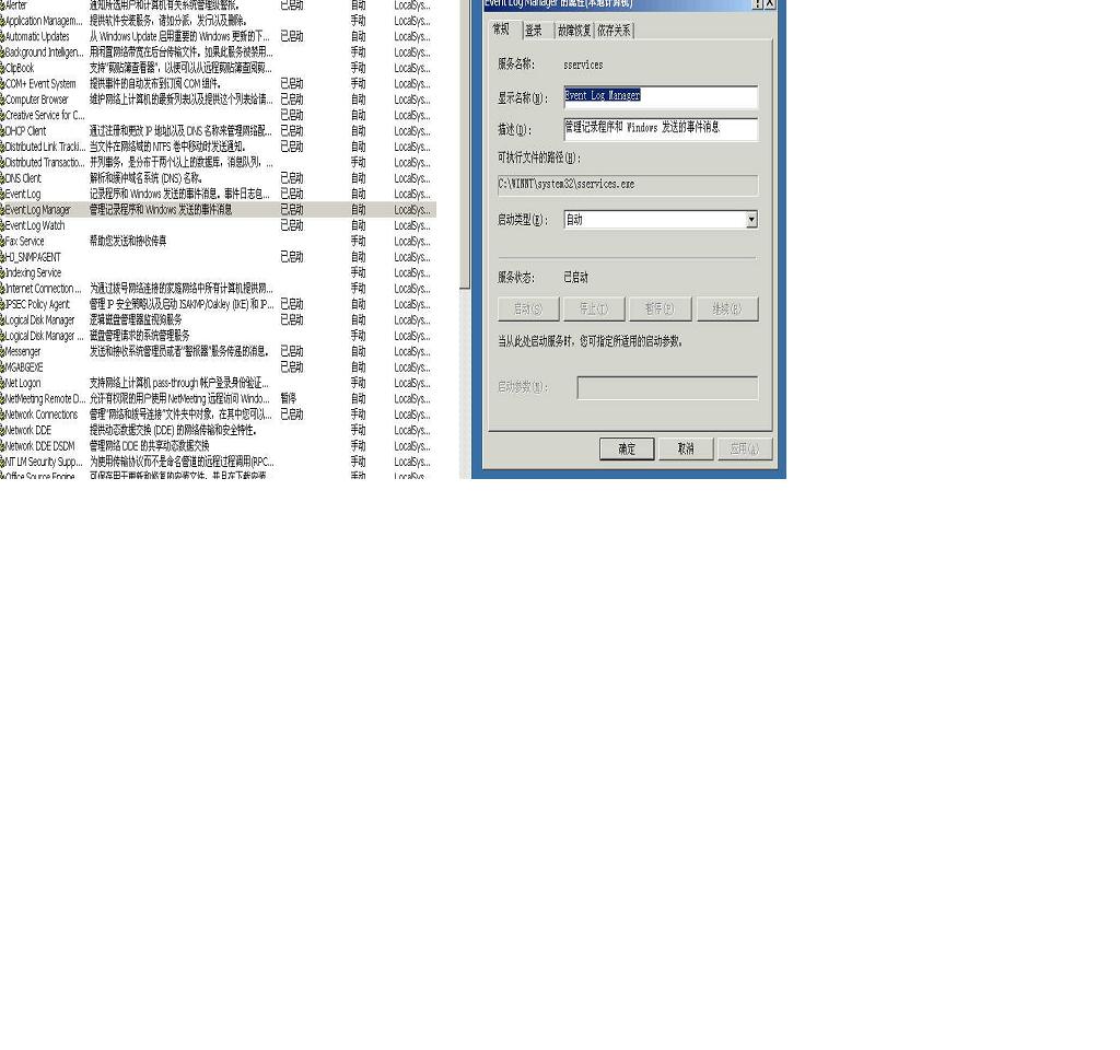 4)系统服务项有另一名为"Event Log"的服务已经运行,程序为sservices.exe,启动和属性不能被修改!