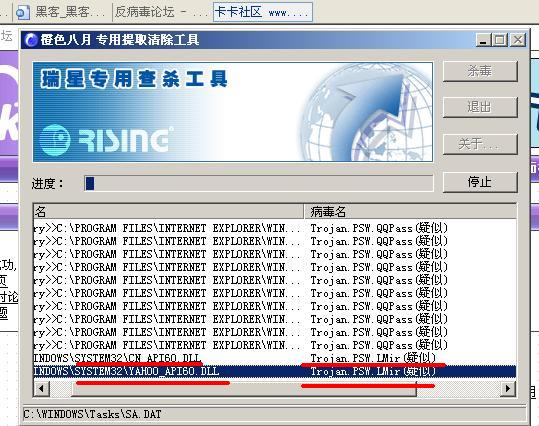 瑞星卡卡安全论坛技术交流区反病毒/反流氓软件论坛 【求助】中了两种病毒:trojan.psw.qqpass和lmir,怎么彻底根除?
