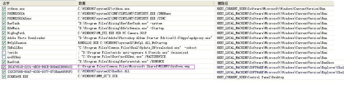 【求助】中毒后启动项里sysdown.wmp 删除不掉