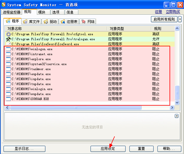 其实,对于绝大多数病毒木马而言,中毒后,用SSM这样设置一下(见下图)。然后,用你所能用的办法(包括用SSM)将病毒杀掉。