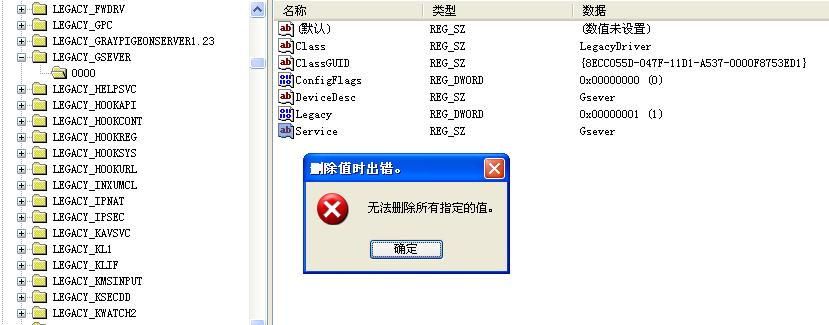 图片里是我删除操作时报错的提示:“无法删除所有指定的值”