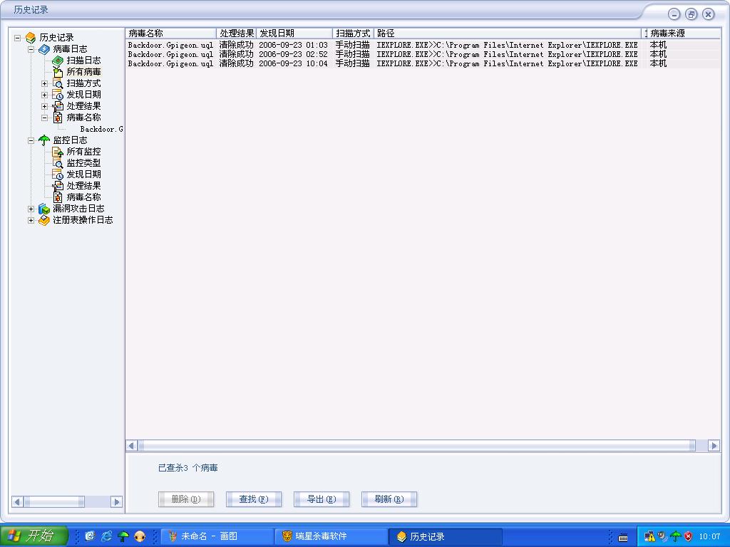 这个是瑞星的杀毒截图