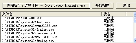中了Trojan program木马,(偶怀疑是落雪病毒)现瑞星和天网的防火墙开不了。安全模式下,在注册表run下删了Torjan Program后,没2分钟又出来了。尝试下载个木马杀客。但装了后一启动没2稍就消失了,再后的时候就说出错。在进程里面发现有2个 “winlogon”的文件,一个显示为我自己的用户名,一个是system.