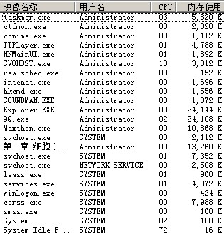 当前运行的进程: