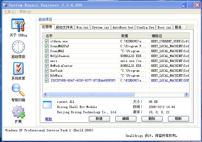 所有的启动项目(包括注册表、启动文件夹、服务等)