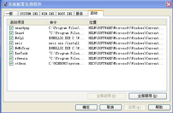 所有的启动项目(包括注册表、启动文件夹、服务等)