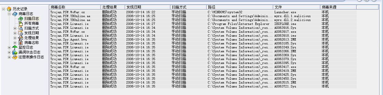 我每天都杀毒,可是每天都能杀出不同的毒来,真是烦透了,55555~~高手帮我看看怎么清掉这些毒吧,谢谢啦!!日志请看下面...