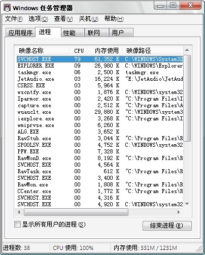 那你是不是运行什么大型的程序了 我5个SVCHOST加起来占的内存还不超过40M, 你一个就干了61M。。。。。