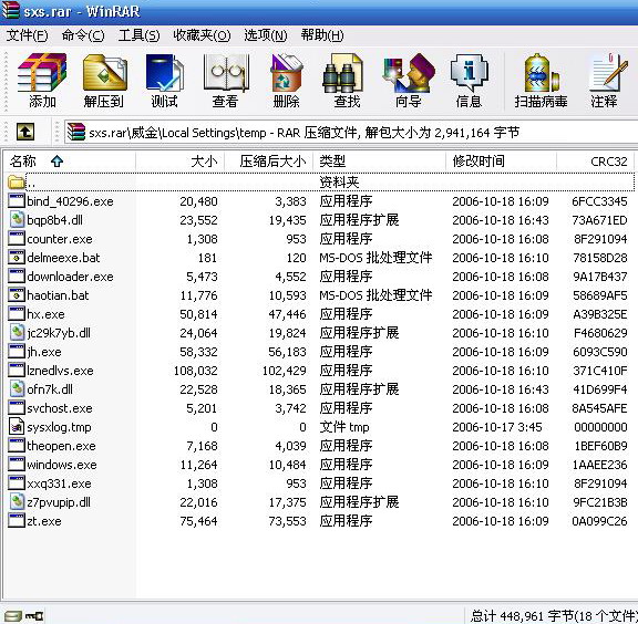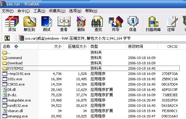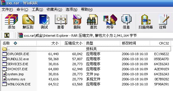 此东西会生成SVCHOST32等病毒文件到IE临时文件夹,TEMP系统临时文件夹还有SYSTEM32还有IE文件夹,有机会还幸运的中SXS.EXE威金,我今天就是中了,但是所有文件手动删除后,注册标也修改了许多处,就是这个网站没搞定,不知道哪个才是真正的注册表键值