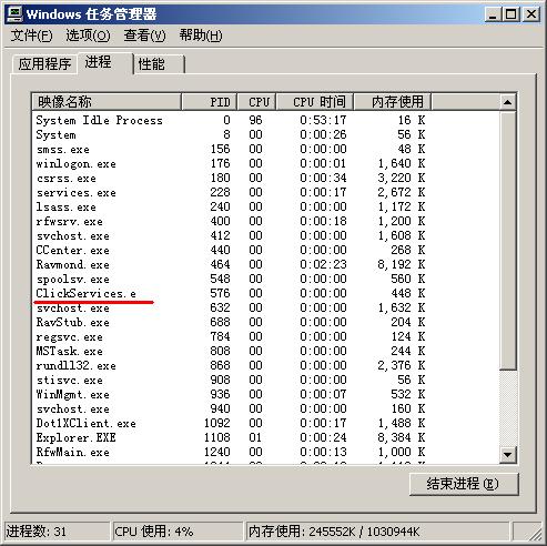 请问Clickservices.e进程是什么,是不是病毒啊?