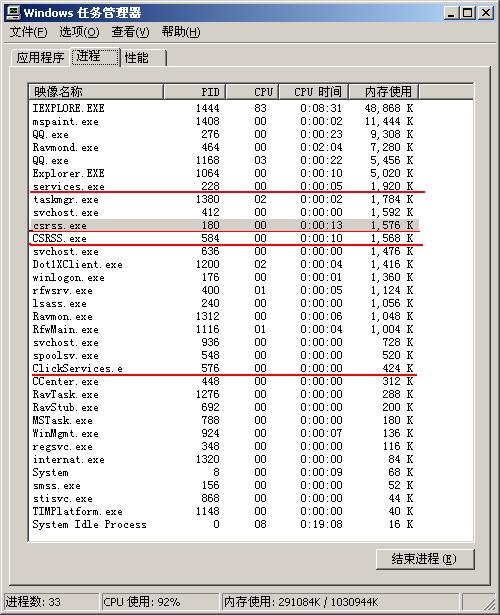 还有进城里面有两个csrss.exe;CSRSS.exe是不是不正常啊