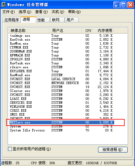 今天发现多了个进程,MRTServ.exe,之前没出现过