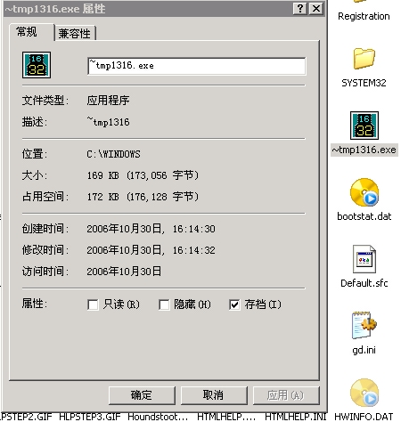 在C:\WINDOWS\temp还有Perflib_Perfdata_320.dat和Perflib_Perfdata_360.dat两个文件.只能在安全模式下删除,开机后又回来了.不知道和上面的有没有关系.