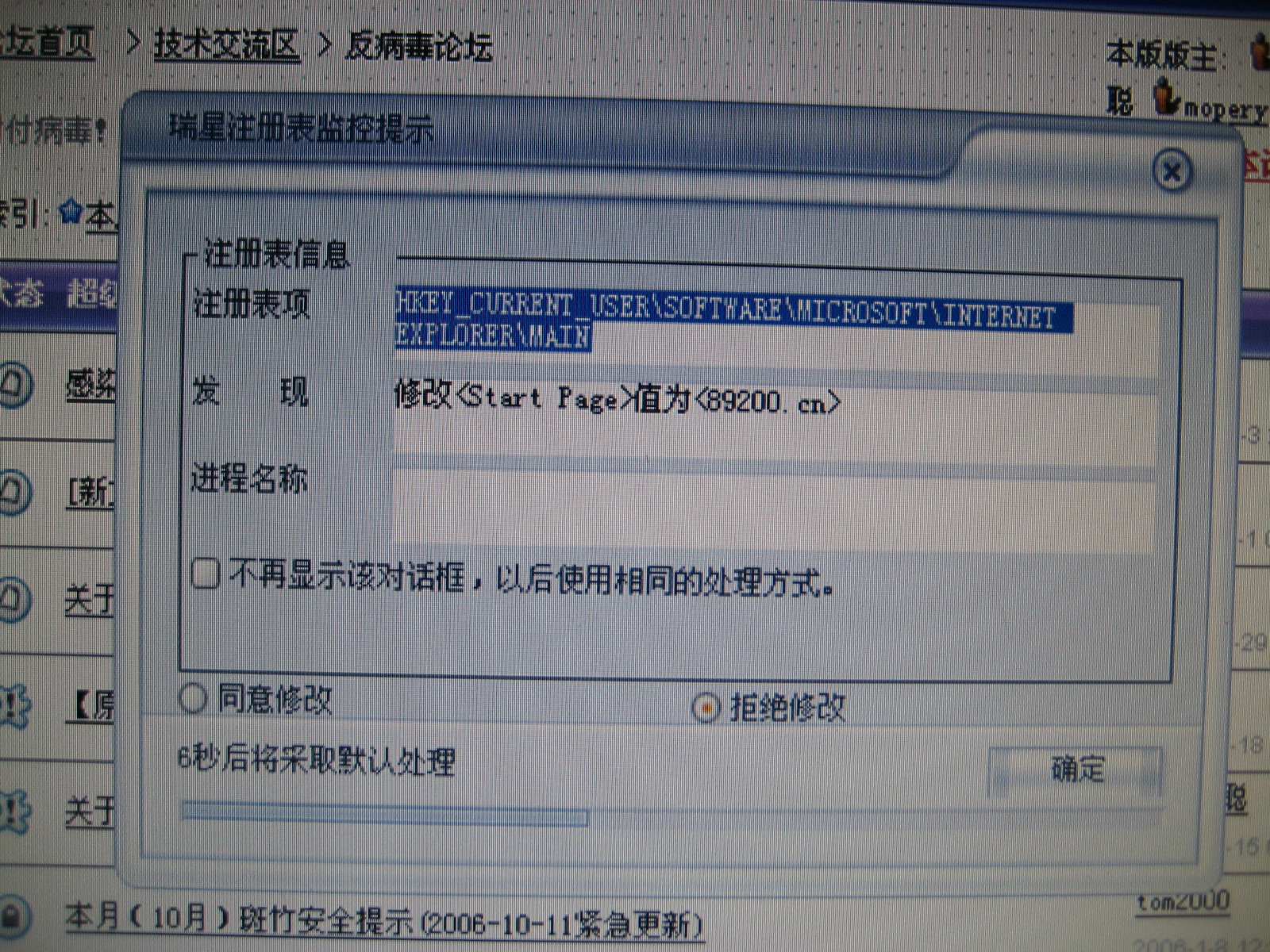 电脑不停的跳出来叫我修改注册表,一半10-15秒就跳一次 我要是同意主页就被该动,现在连日志都扫描不了 一开扫描工具就自动关了