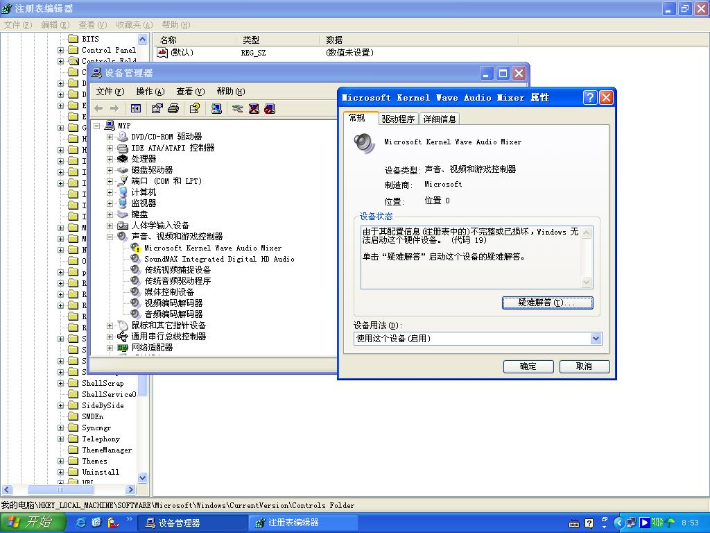 我的音频控制突然出了问题,如附图所示,是不是什么病毒修改了注册表呀?该如何解决?谢谢!