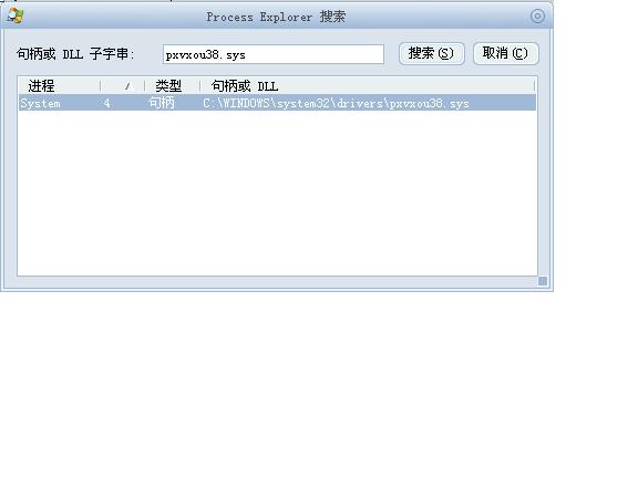 在搜索框中输入那个驱动的名称 我这里是pxvxou38.sys