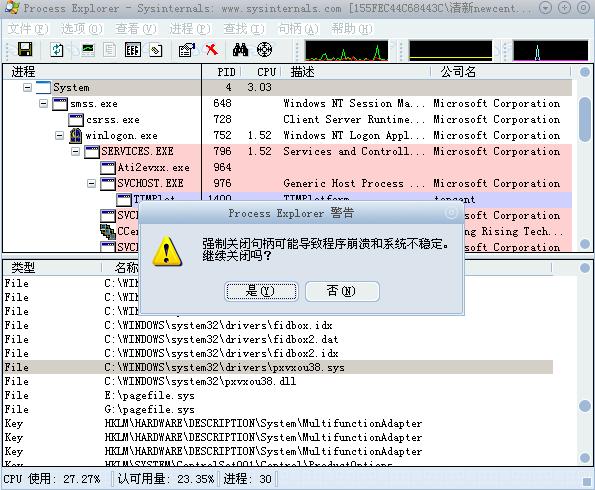 然后在那个上面点右键——关闭句柄  (图6)