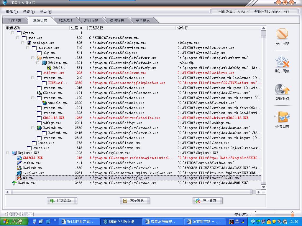 【红夜鬼1的贴子】正常,这些是防火墙,通过网络的软件,就是红色