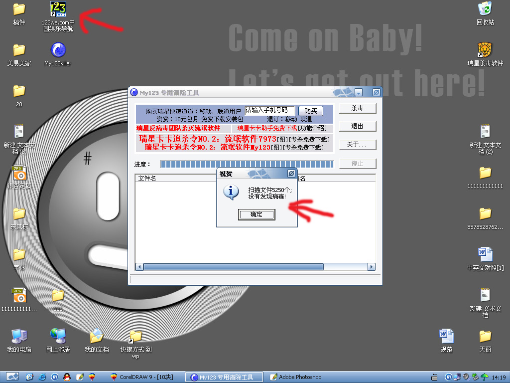我装了卡卡3.0和MY123专杀工具.都试过了,可那个该死的图标依然顽强的挺立在那里,哪位大虾帮帮我啊`~~