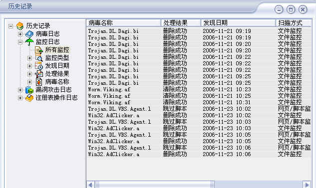 今天有点奇怪,虽然有东西被拦截了,但杀毒软件没有提示有被杀的病毒。平时一般会同时提示有病毒!附图是这几天我在我笔记本上发现的病毒。在家里的电脑也有记录。