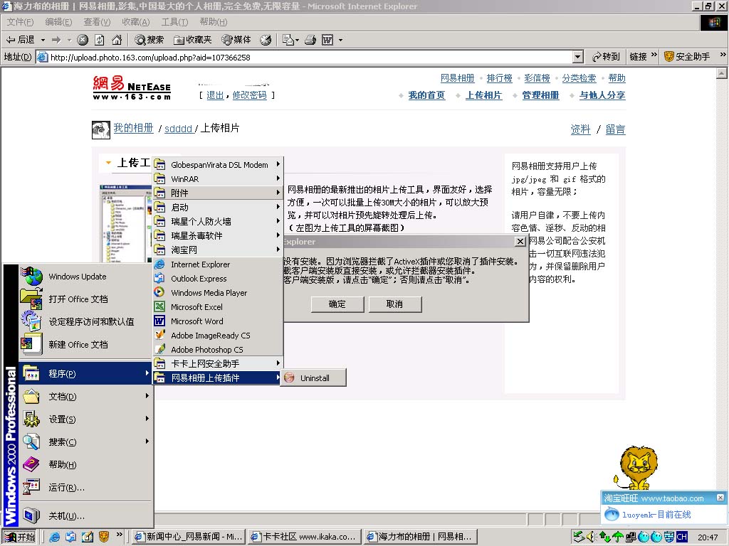 下载某站的电子相册了。可就是上传的时候总提示什么插件没有安装。安装N次都提示已经成功。并且已经到卡卡中把相关屏蔽解除,防火墙也关闭了几次,照样是如下提示,究竟是我这边的问题还是使用不当?请帮忙看下:大图一点会新窗口打开,劳驾看下````````