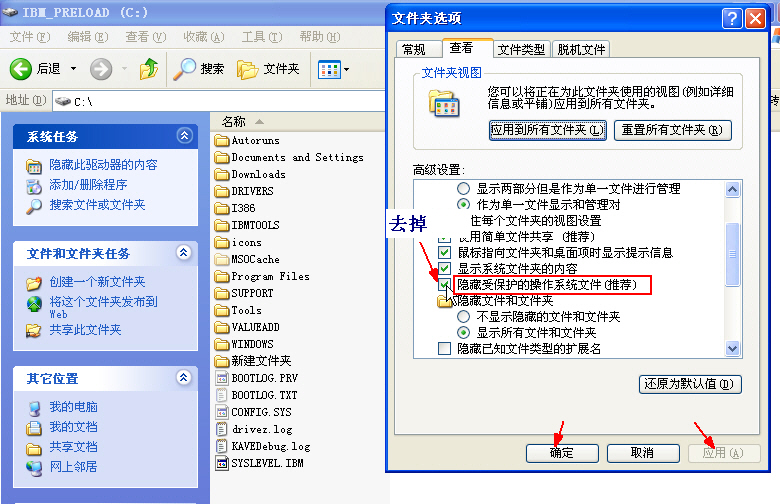 5、此毒在“禁止查看隐藏文件”方面似有缺陷。中招后,用户自己设置一下文件夹选项(图1),隐藏文件即刻暴露(图2)。