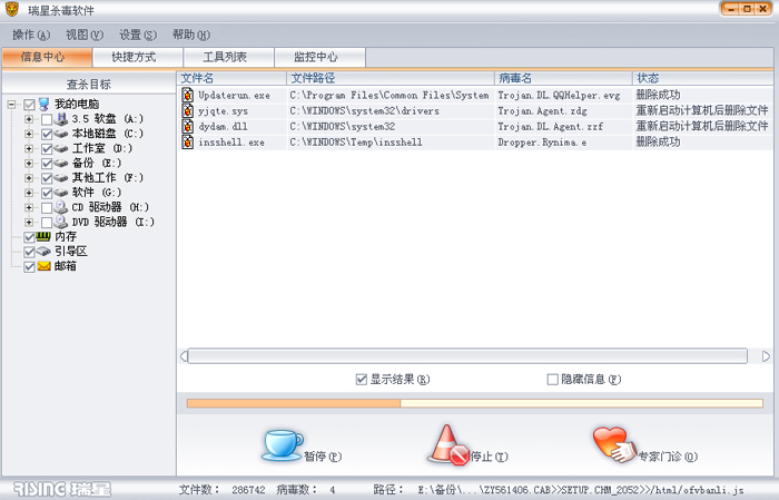 Trojan.agent.zdg Trojan.DL.agent.zzf 这2个病毒说是重新启动后删除