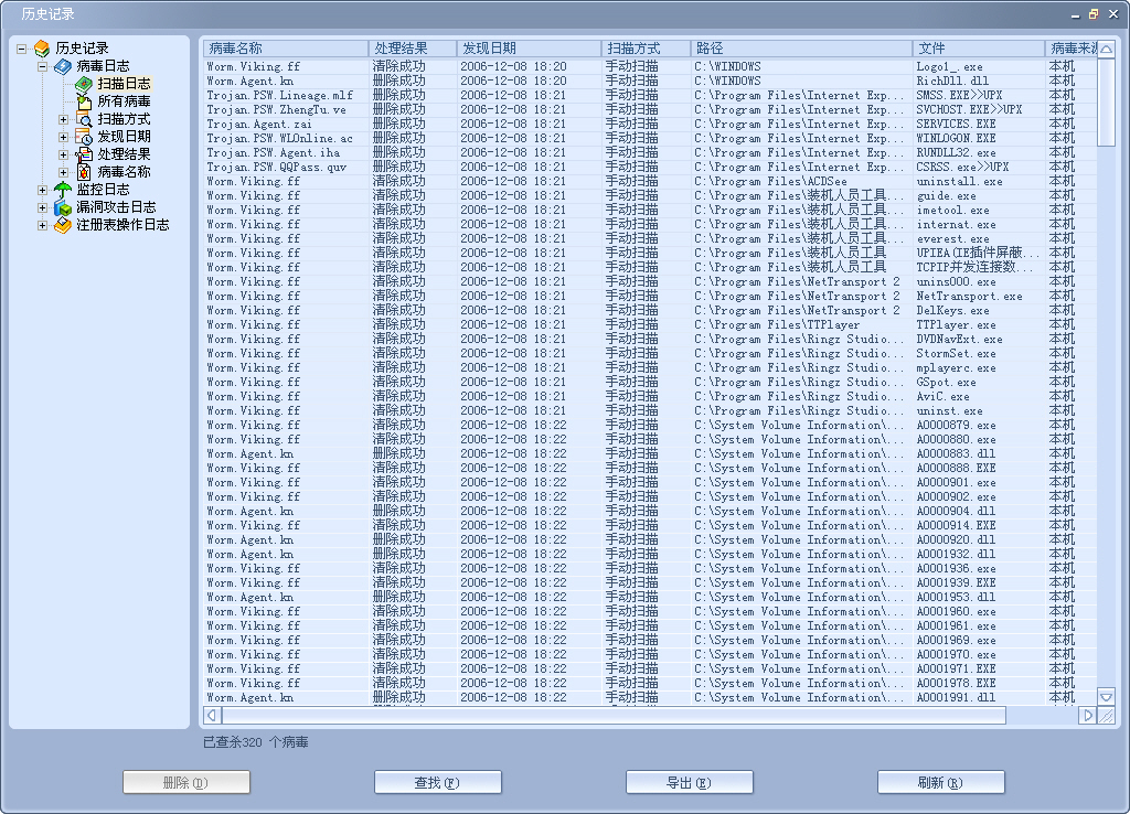XP下的System Volume Information文件夹下查杀了几百个病毒