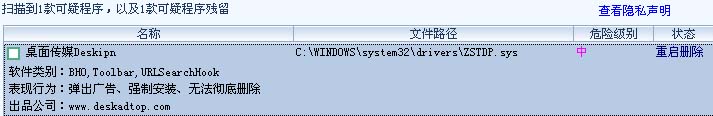 估计该流氓软件已经升级,致使瑞星卡卡无法删除,另外该流氓软件危险级别绝对应该是Highest!!!可以自动下载其他流氓软件,我开机后清理一遍,就剩它一个,不一会,再搜索,居然又出现二十多个!!!
