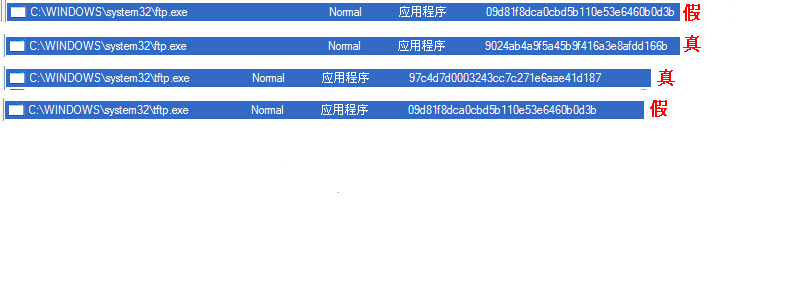 4、C:\windows\alg.exe修改系统文件ftp.exe和tftp.exe。与原系统文件比较,病毒改动后的ftp.exe和tftp.exe文件大小不变,但MD5值均变为09d81f8dca0cbd5b110e53e6460b0d3b(见附图)。系统原有的正常文件ftp.exe和tftp.exe被改名为backup.ftp和backup.tftp,存放到C:\WINDOWS\system32\Microsoft\目录下。