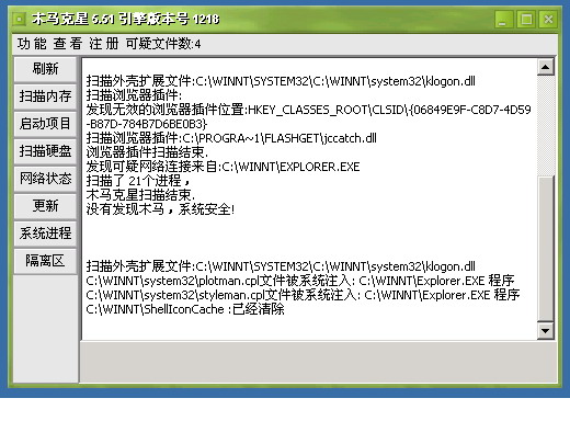 C:\WINNT\system32\plotman.cpl文件被系统注入: C:\WINNT\Explorer.EXE 程序