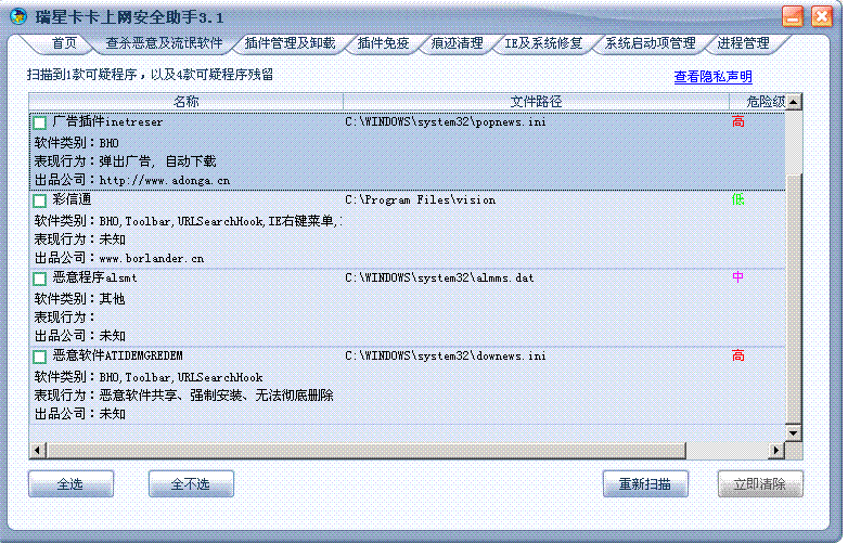 我中过 桌面传媒 经过~安全模式下杀毒 已经找不到了~ 但是现在出现了 下面的东西 每次 开机只要打开我的电脑就会弹出 很多广告~ 瑞星能查到 但是杀不了 我在安全模式下杀过 但是还是不起作用 卡卡上网助手 也不行~ 我该怎么办~ 我不能全部把 硬盘格式化 里面有很多病人的病历~~~ 我怎么办 求助~~~