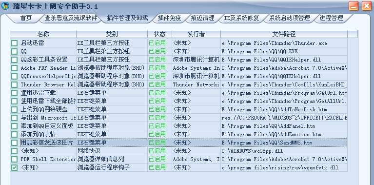 瑞星卡卡安全论坛技术交流区反病毒/反流氓软件论坛 请问,瑞星卡卡里发现的这个插件正常吗(最下面的)?