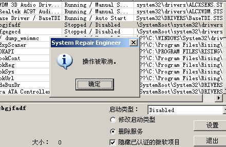 3、用IceSword删除红字内容所列的各项。